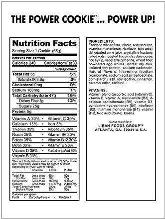 Here is the front and back of the Power Cookie package as of 9-26-00.