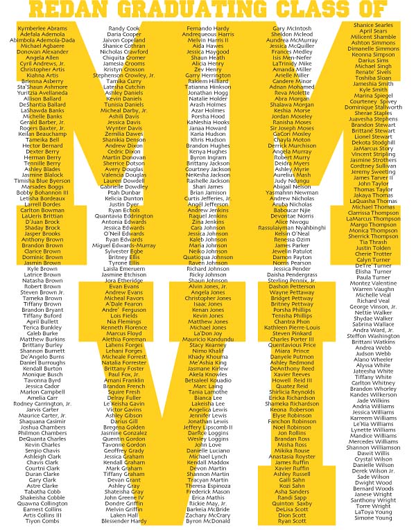 Geoff: Here's the back of the Redan Senior shirts. Have your client proofread the names. There were too many names to fit INSIDE the letters. The roman numerals don't have to be GOLD but at least some light color that doesn't interfere with reading the names.