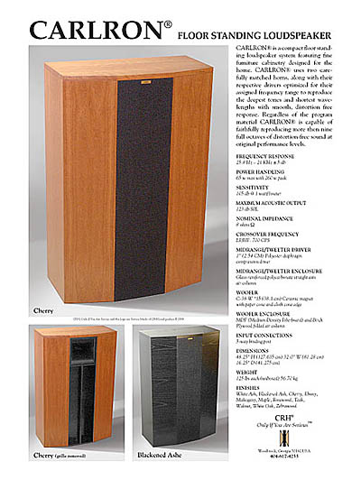 Ron Hook of CarlRon Loudspeakers has been our customer since the very beginning. Here we have created a new spec sheet for the latest model of his CarlRon audiophile loudpseakers. We did the photography and created the shadows as well as the background for the speakers. We also created Ron's first web site.