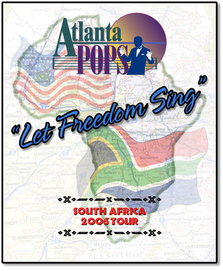 The Atlanta Pops has asked us to create many pieces for them. We created their logo, their Broadway Program, various ads, CD jewel case packages, and more. Here we created a program to help rasie money and support to fund a South African Tour in 2006.