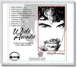 | Atlanta Pop and Christian musician/songwriter Gary Brockhoff asked us to create a jewel case design for his self-produced album, Wide Awake. We came up wih the idea to photograph Gary with his eyes closed on the front and then wide open for the back and on the disc. Additionally, Gary asked us to create a logo for his music production company, 4468 Productions. The jewel case packaging was created in a way to allow Gary to easily print, duplicate, and assemble this project himself in small numbers. Since the completion of this project Gary has asked us to create 2 other CD Jewel packages: Clear Blue and One. |