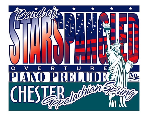 The 2002 Band of Stars show featured a medley of "Star Spangled Overture", "Appalachian Spring", "Chester", and "Piano Concerto No.2". To the left is our alternate design, the favorite of the designer but NOT the one picked for the final printing!